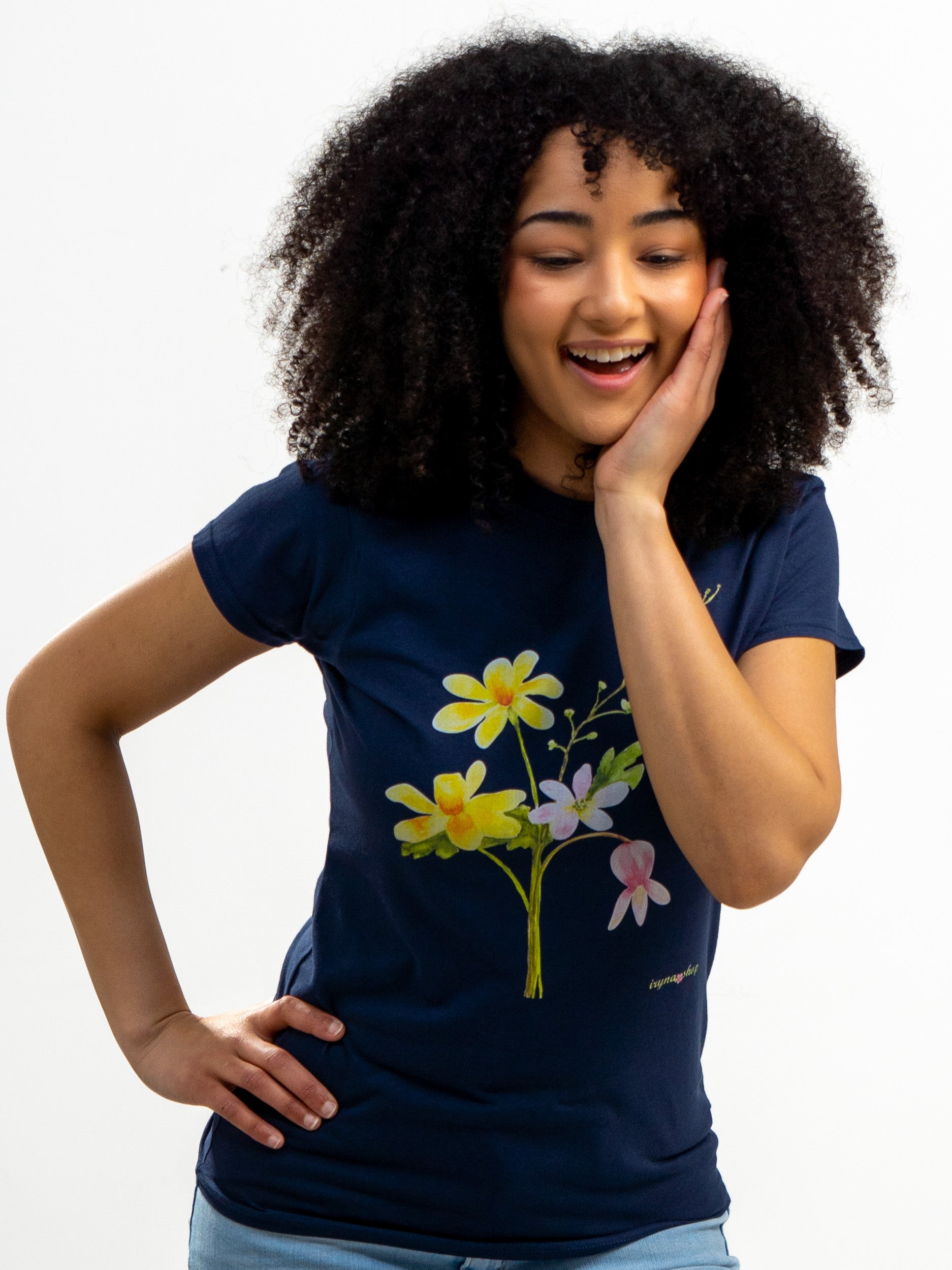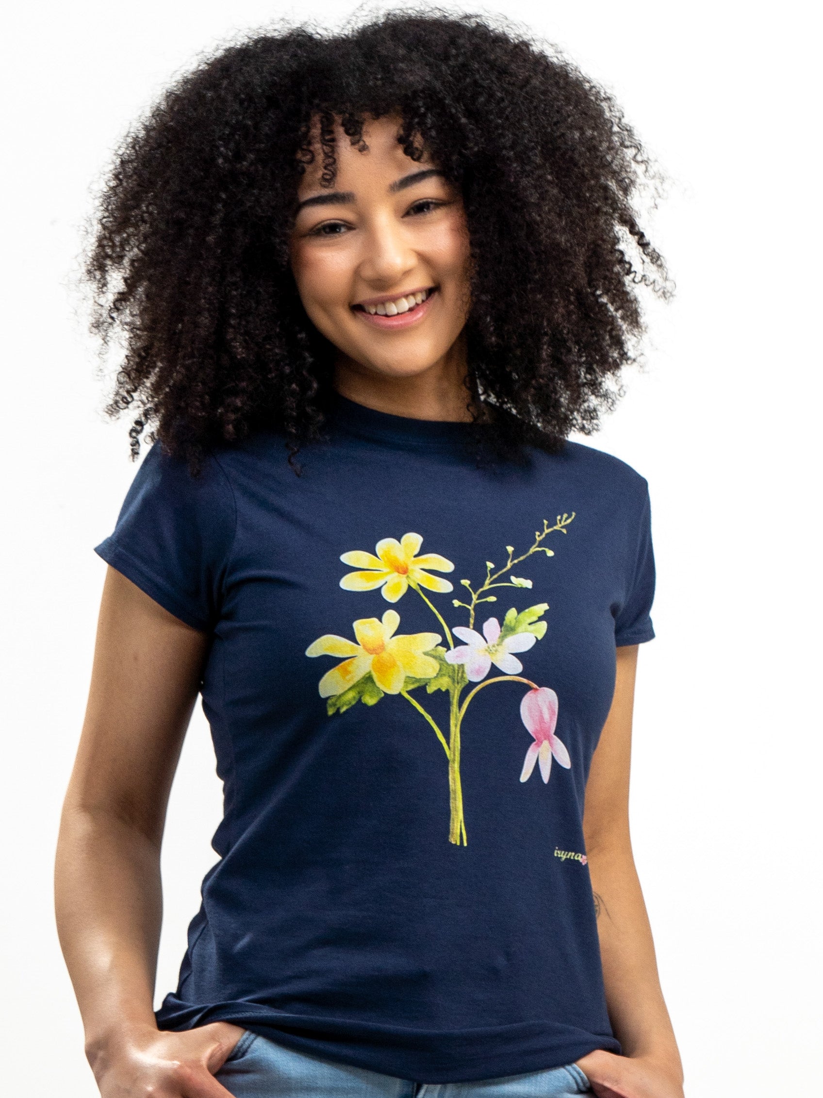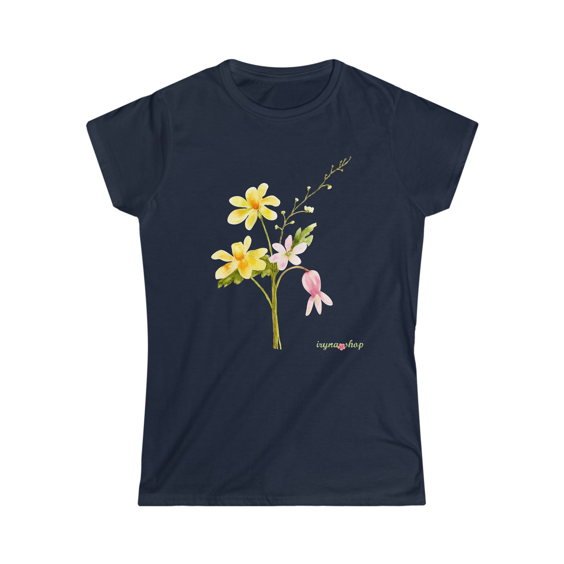 The woman's softstyle tee is a more feminine take on the classic tee. The sleeves are shortened to reveal some shoulder. The fabric is a blend of cotton and polyester. There are no side seams because the garment is knit in one piece. The shoulders are taped with twill to prolong durability. The collar seam is reinforced with ribbed knitting.
